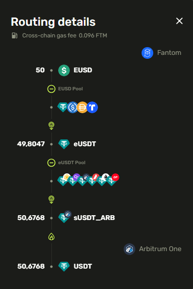 3. After entering the amount of tokens to be withdrawn, the system will calculate the number of LP tokens received and the gas fee. By pressing **Routing details**, the Routing will be displayed.