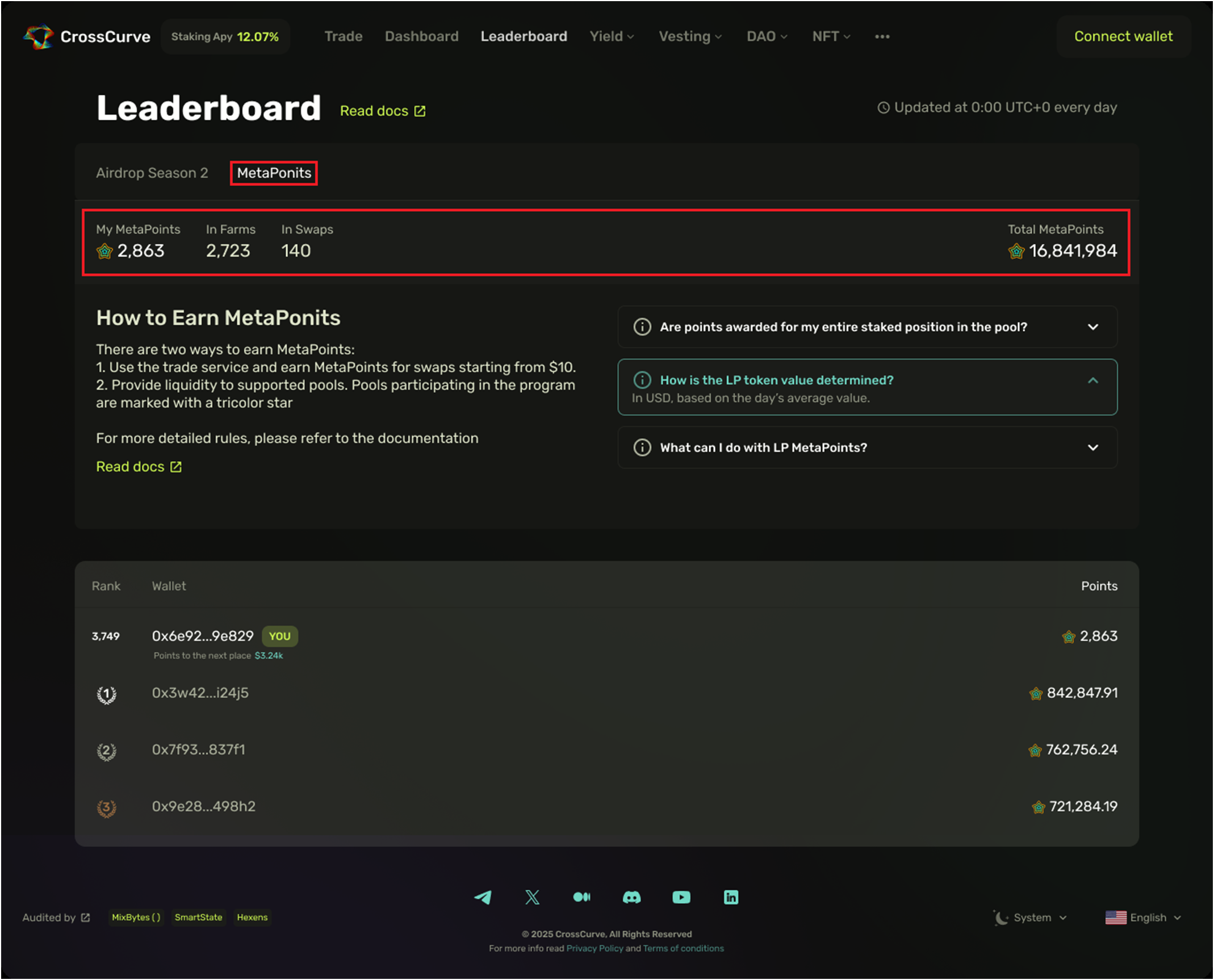 * Users can find **MetaPoint** accrual information on the **Leaderboard** [page](https://app.crosscurve.fi/leaderboard) in each relevant tab:&#x20;