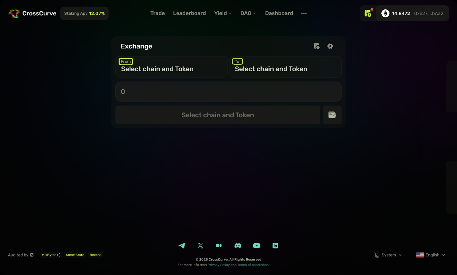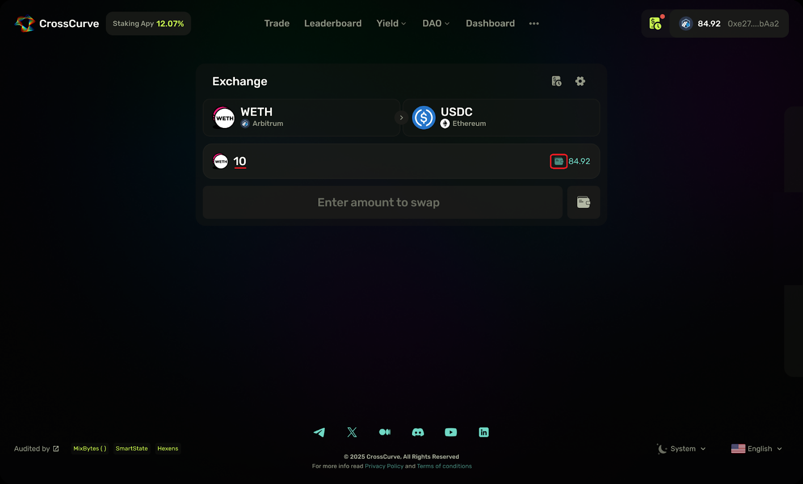 **Step 1.** To access **CrossCurve DEX**, go to <https://app.crosscurve.fi/>.