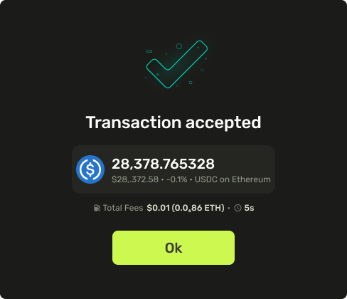 *If the transaction has a high price impact, an additional window will appear before signing the transaction, where you will need to confirm the operation. This is to prevent accidental loss of user funds.*